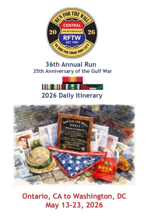 Central Route will be having Pre-Paid Fuel for 2026 is $65.00 per motorcycle or trike. The money collected will cover your RFTW fuel stops from Ontario, CA to Washington, DC. Thanks to our many donors across the country, whose generosity allows us to keep our fuel costs down. Without them our prepaid fuel costs would be much, much higher.