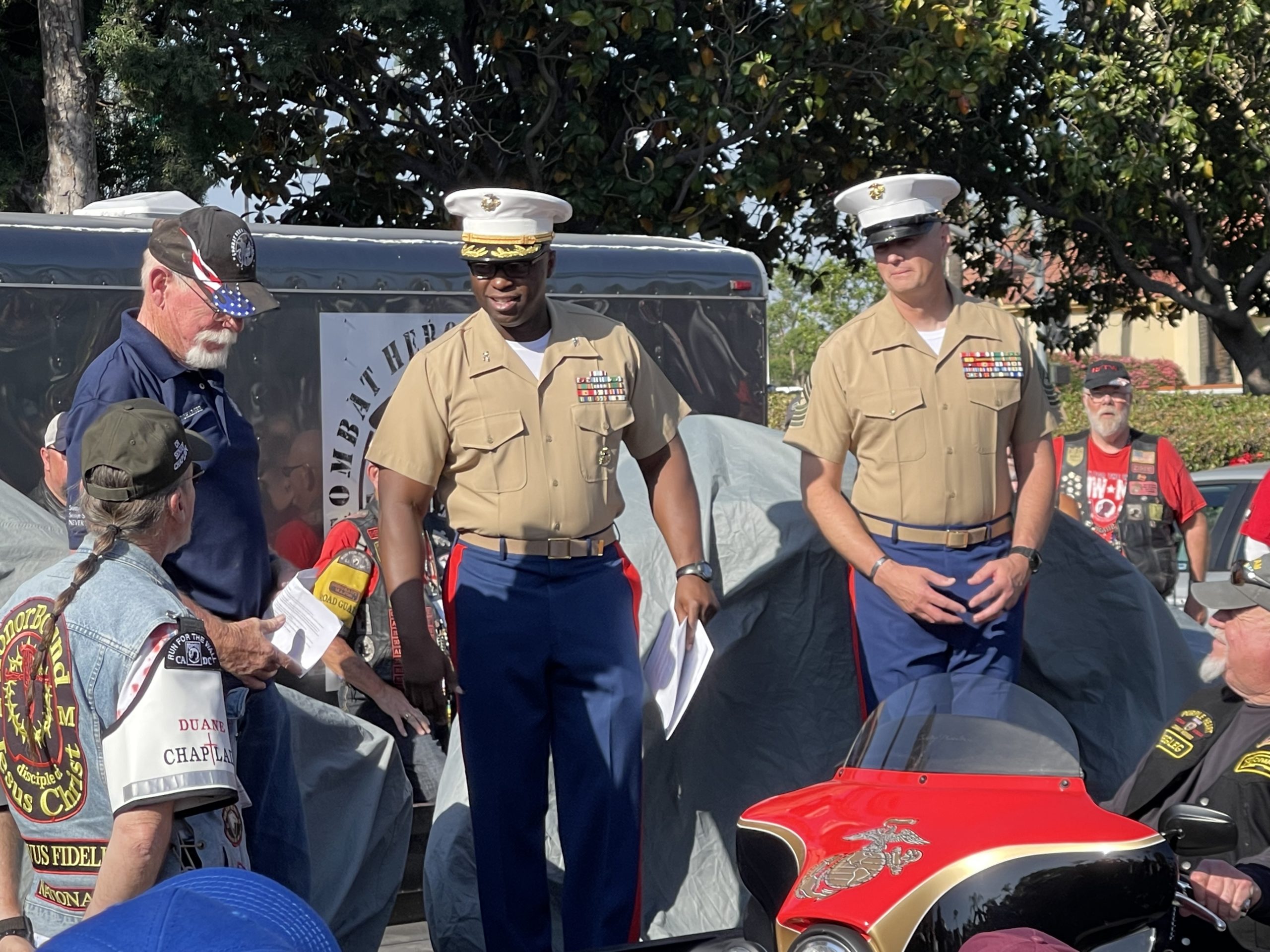 One of the most important ways we honor others is through the Missing Man Formation. Every mile of every day we ride for a missing man at the front of our line of riders. The formation consists of two riders followed by just one who is in turn followed by two. The space next to the one rider in the middle is left for the “missing man” and the person riding next to the missing man is the missing man escort. Every leg, we ride for someone different. I’d like to tell you about one of the riders who rode as an escort today. Tom is an FNG from Washington State. He rode in honor of his father, Sheldon Grover, Field Musician First Class USMC, who served as an antiaircraft gunner onboard a ship during the campaign for Okinawa. I am unsure of what Tom was feeling before he started his missing man escort, but looking at him I could see he was experiencing many emotions and thoughts and that his ride might not be easy. When his escort was completed I asked him how it went. Part of his response was, that “it became easier the closer we rode to its completion.” Riding as the missing man escort can be quite difficult. Thank you to those who have and will fulfill this role during our run to DC. We honor you and are all behind you, literally, spurring you on to the completion of your mission.
