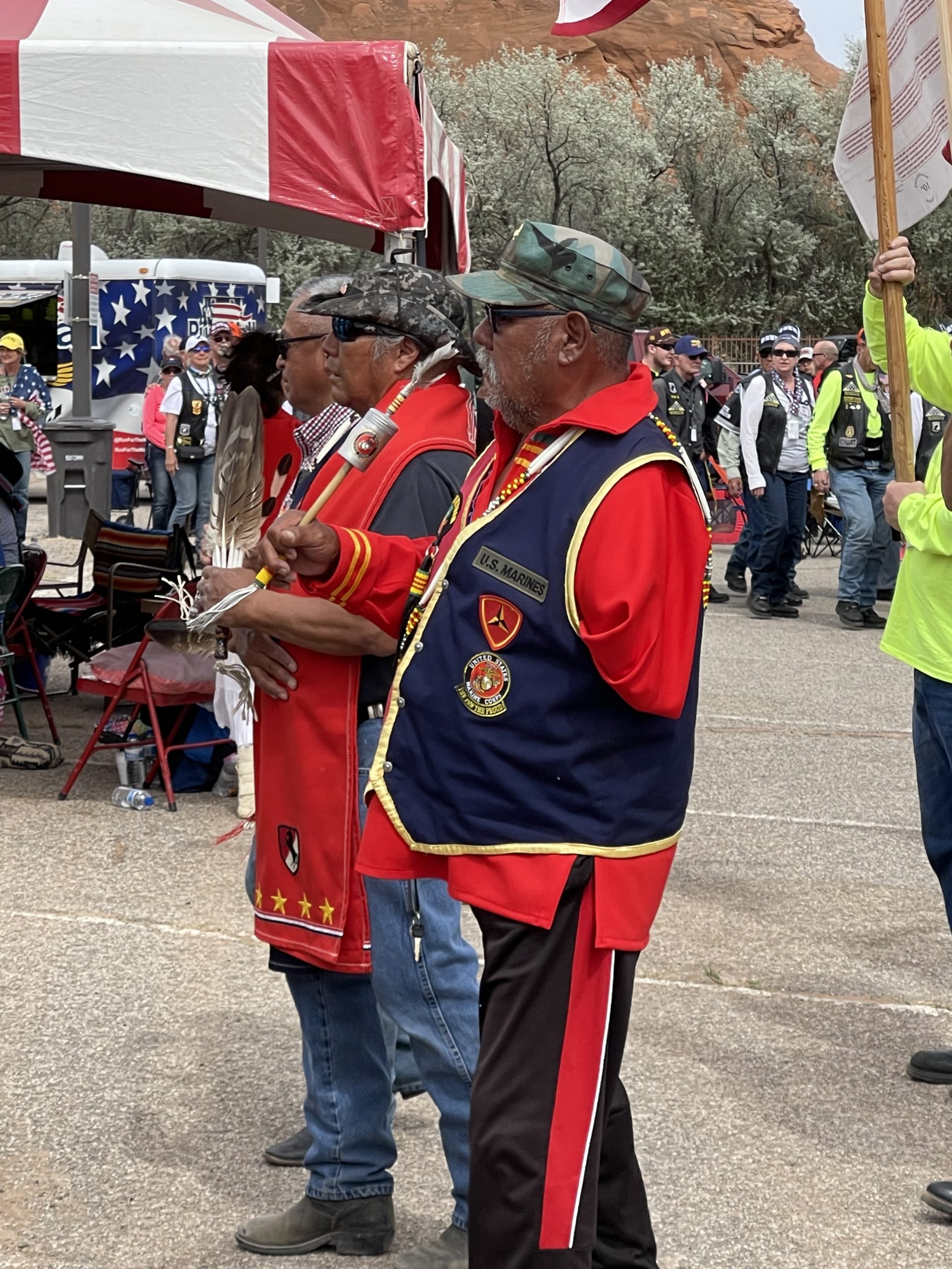 There are many moments of patriotism on display each day that cause riders to well up with emotion. For this SitRep Writer, there were several. One was upon entry to the State Capitol when a US Marine Sergeant held his salute for all of us as we rode in but that isn’t all, a young man, who has been coming out to see us since he was a toddler was also there doing the same. That young man, if I have my notes straight, is now 19 years old. Thank you both for showing us such honor. The second was as we were passing along our route to Rainelle. There were countless people out waving flags or recording videos of us as we rode by. It was one of these groups all dressed in yellow shirts lined up perfectly spaced and one holding a US flag while all the others (I’m estimating them to be about 20 strong in number) were saluting. It was obvious they represented a local military-affiliated service organization but we were moving too fast for me to identify which one. There is a photo in the image gallery below of the group just after they stopped saluting. Maybe you’ll recognize yourselves or someone you know. The last moment was at the school with the students. The Principal, Kim Tincher, had her students lead us in the Pledge of Allegiance and then one of the classes sang the National Anthem. Hearing the wonderful voices of this school pledging allegiance to the flag in unison with the veterans, many of them combat veterans, who fought for the freedoms to make this day possible, had me welling with pride for our nation and the future of our children so much that I was hardly able to mumble out the words.