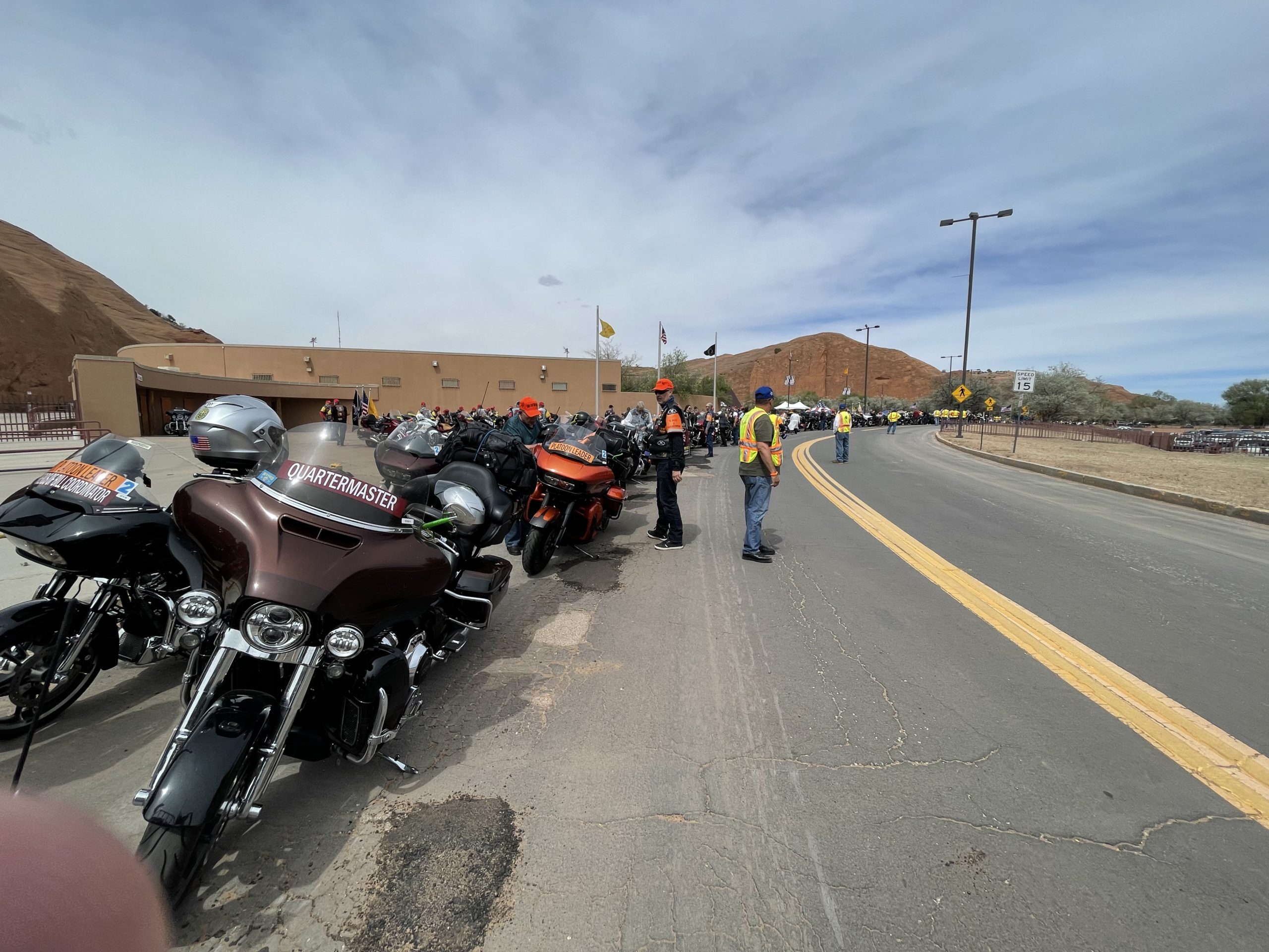 Now let me leave you with one of the many miracles we’ve seen. One of our riders had his bike loaded onto a chase truck due to a mechanical issue. He was rummaging in his saddlebags and gear before stepping off the trailer to get into the cab of the truck. What he didn’t realize until they stopped some 100 miles later after traveling through severe wind gusts was that he left his helmet sitting on the seat. I’ve personally set a helmet down on a seat in the smallest of breezes and had it blown off. Amazingly, the helmet was still on the seat when they stopped. Let me run that by you again. The helmet, which is round, was left sitting on a seat that also isn’t really flat, was still on the seat surviving centrifugal forces from the normal cornering and braking of the truck, and high wind gusts. It is by the grace of God that we travel safely across the country. It is not a coincidence that we have a group of chaplains all on their own motorcycles riding with us.