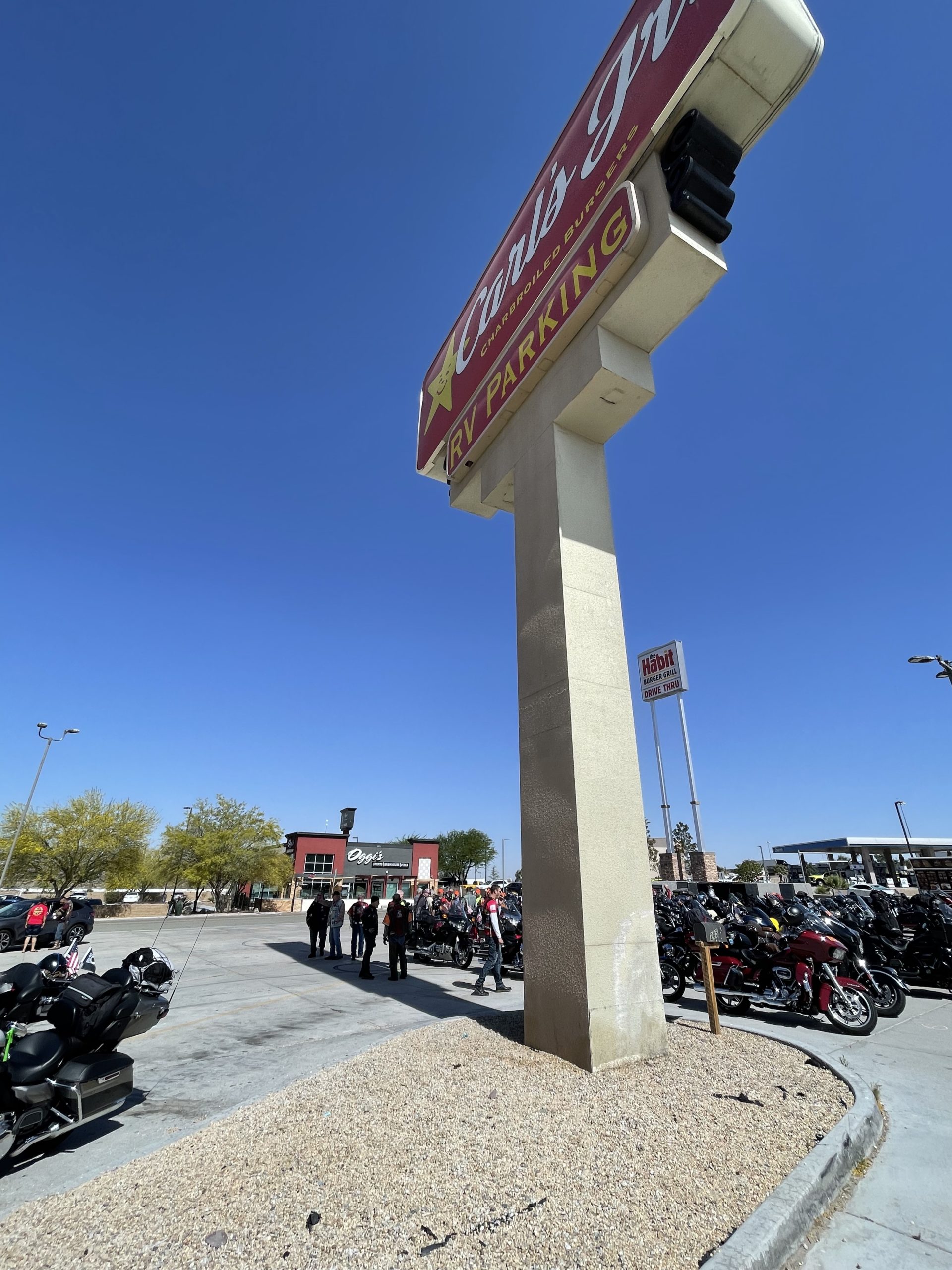 What’s not to like about parading along historic Route 66 in Williams! We entered the city on historic Route 66 from the West and paraded through warmly lit neon in the light of a soon setting sun and the radiant smiles of patriots who waved us into town. Williams is in the desert, but I assure you, there was a bit of rain in many riders helmets. The welcome we received on the streets of Williams was matched by the amazing bar-b-que so generously cooked for us by the volunteers at American Legion Post 13. The meal Post 13 provides always warms both our stomachs and our hearts. If lunch in Needles wasn’t clue enough, it’s at this point in our mission that FNG’s realize they will not go hungry unless they choose to do so. The generosity given to the riders through a labor of love represented in the ample bar-b-q and fixins in Williams paired with the spread at lunch meant no rider was going hungry today and there won’t be anyone hungry going forward either.