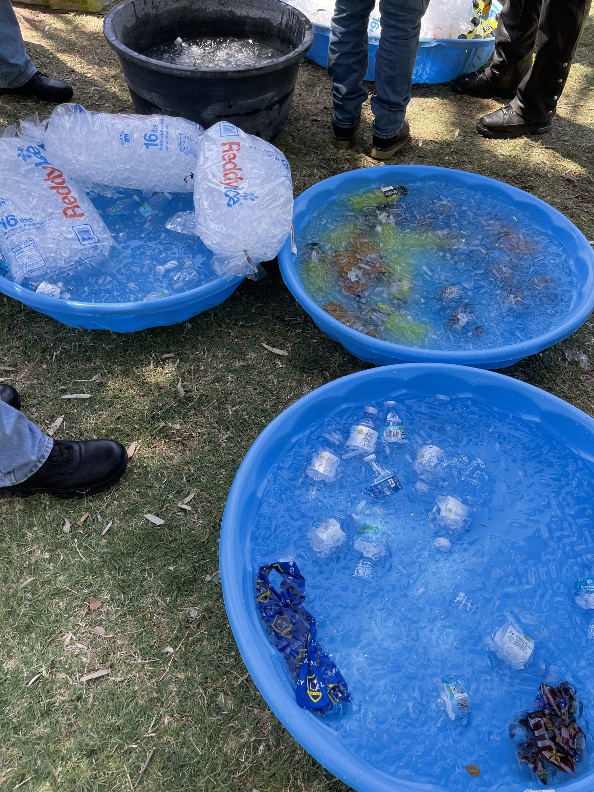 There’s just something about the town of Needles that makes the insane heat there just fade (at least a little) into the background. If one rides away from Needles hungry or unhappy, they’ve missed what Needles has to offer. There are many people we encounter on the run that have spent countless hours in preparation to host our riders for a meal or a gas stop. The first place we stop for a meal is Needles; the people there get us off to an incredible start. Lunch was served in an air conditioned room! I’m not quite sure if I should call our lunch taco salad, or beef nachos with all the fixings. Maybe the best thing to call it was “delicious.” Outside, we were provided with bananas, ice cream, cold drinks, and cooling bandanas to help us across the desert. The entire visit was set to the backdrop of music from not one, not two, but three bands! The music was great, but seeing people still learning to play instruments made me smile. A bit of a side note about me, for my undergrad years I majored in music so the gift of music in the hot sun filled my soul for the remainder of the day’s ride. Thank you Needles for declaring today Run For The Wall Day and for providing such a “warm” welcome. The special tablecloths were really cool!