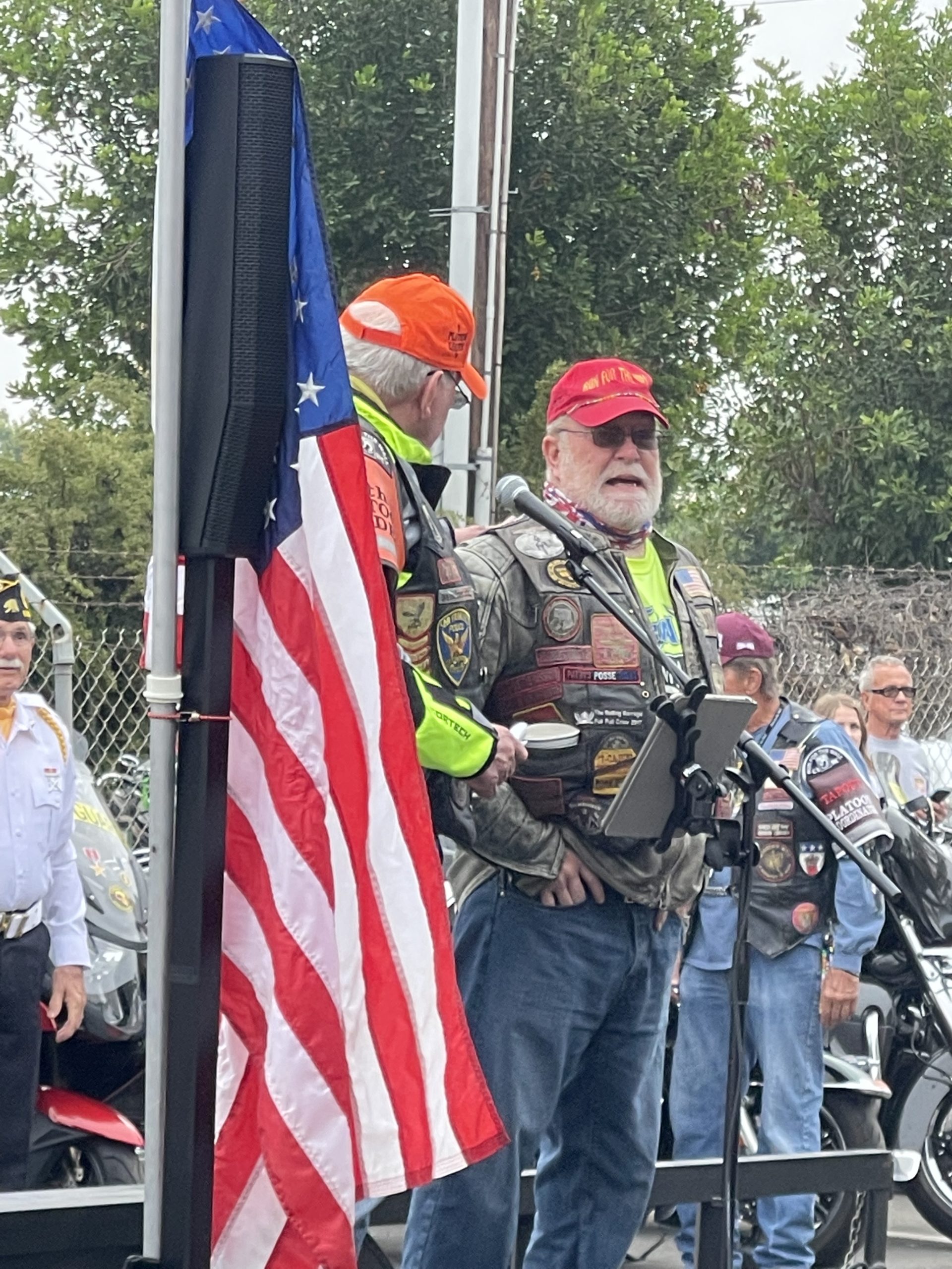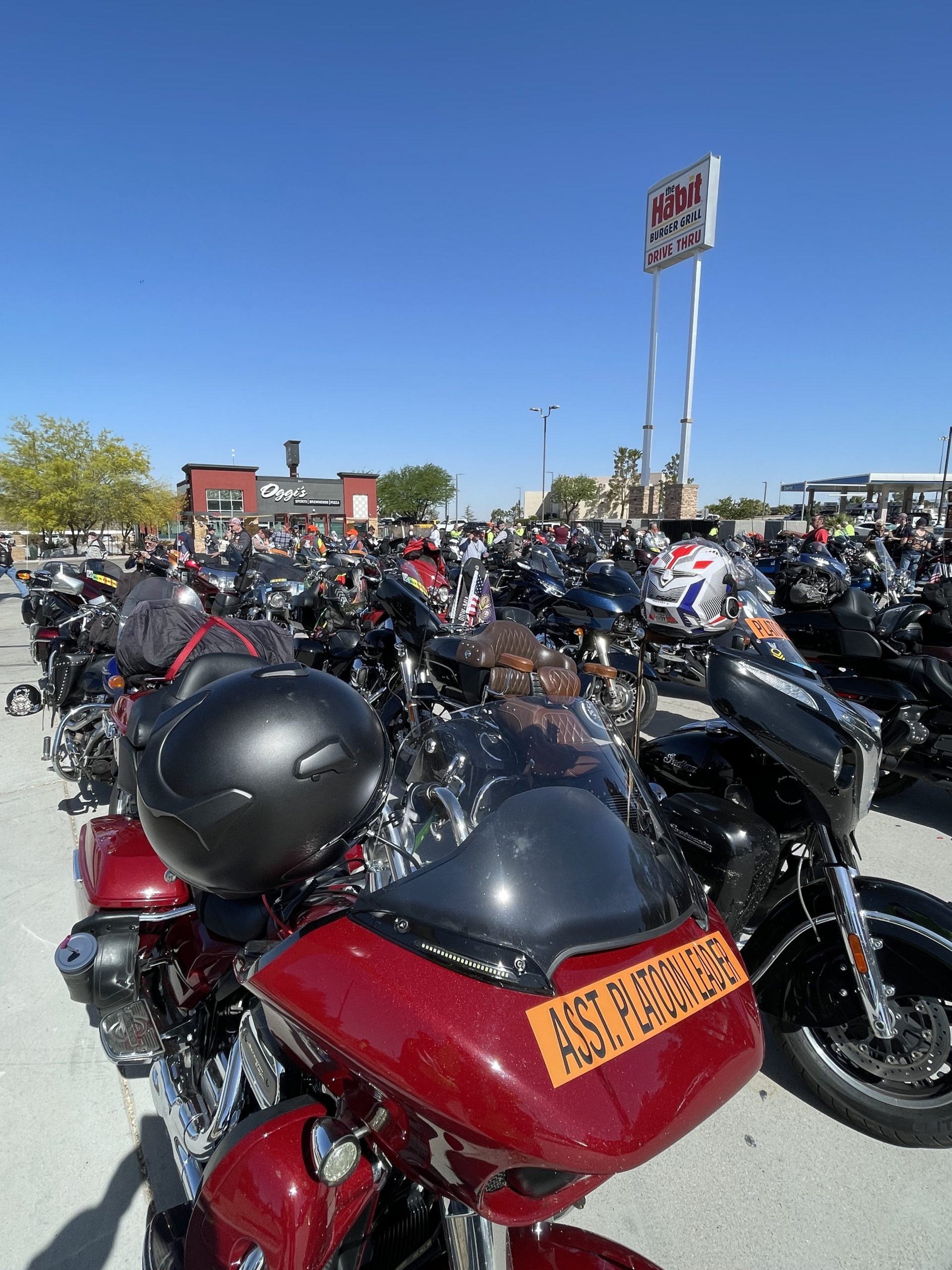 After a two-year hiatus the RFTW was once again rolling out of Ontario California enroute to Washington DC. The day started early, with last minute registration starting at 0545 and riders from the Central, Midway, and Southern routes staging at the Ontario Convention Center parking lot D for a spectacular sendoff, which started at 0645. Donuts, coffee, and breakfast burritos were graciously donated and handed out by volunteers from local service organizations, the National Anthem was sung, and chills were experienced as about a thousand patriots pledged allegiance to the flag of the United States of America. Thank you to the Marine Corps Walking Color Guard from the Marine Corps Logistics Base in Barstow CA for presenting the Colors. As is done every morning, the day was started with prayer, a safety briefing, and several groups of people were honored…FNG’s (Friendly New Guys and Gals), Active-Duty Military, Medal of Honor recipients, Blue Star families (those with family members currently serving), and Gold Star families (those who have lost an actively serving service-member).
