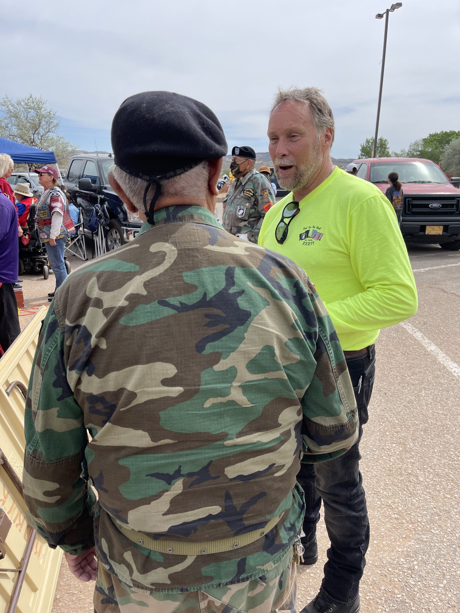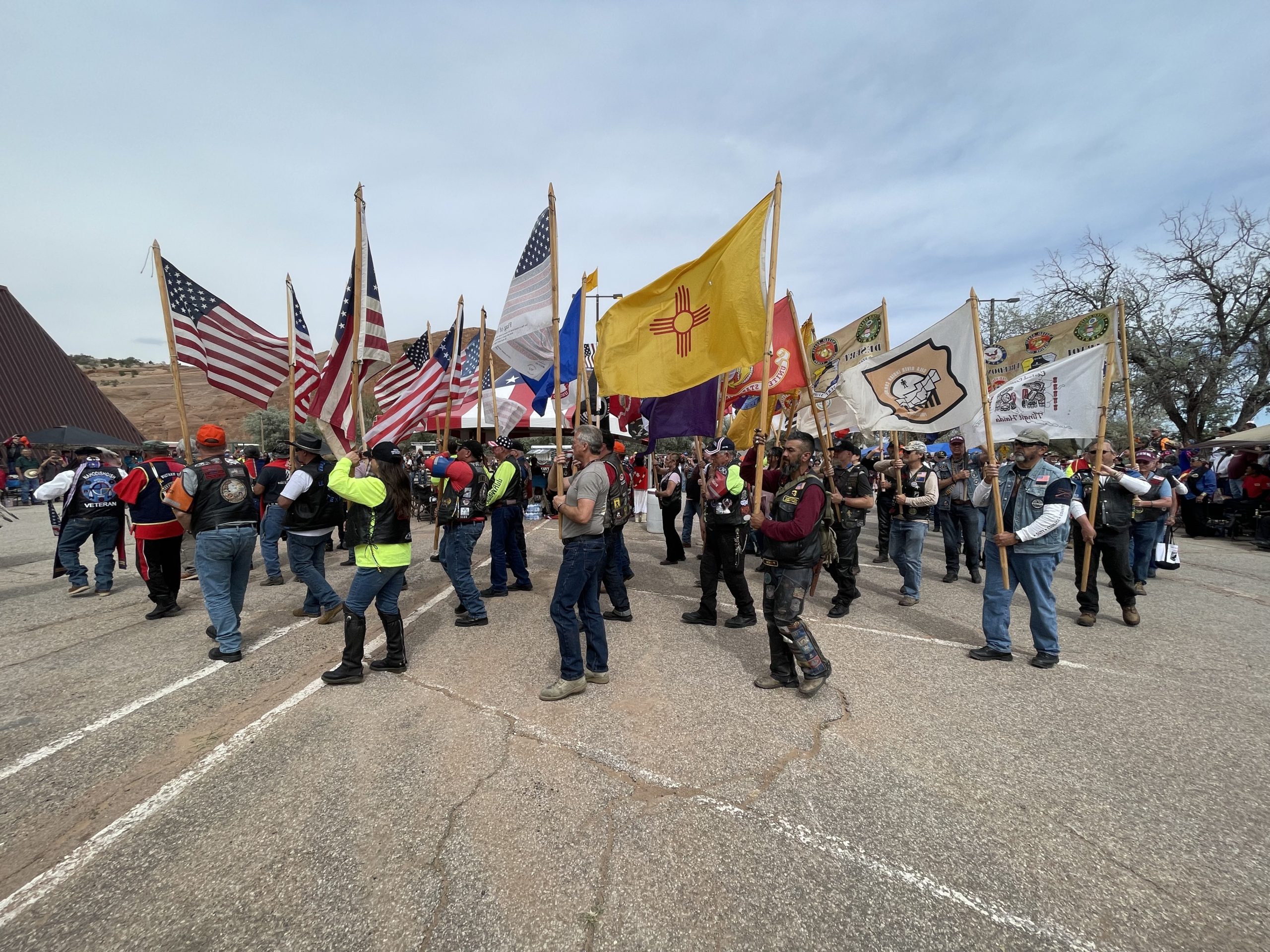 Today’s route saw us travel from Williams AZ to Gallup NM. We stopped for fuel in Winslow after parading through town, then rolled on to Holbrook for lunch. As we entered town we were lead in a parade past every school, and I mean every school where every student lined the street holding flags, waving signs, clapping, waving, and yelling, “thank you”. The honor these students and their teachers showed to complete strangers, veterans, riders, was overwhelming. I wear foam lined glasses when riding so wind, rain, and sand don’t get in my eyes. I had to lift them off my face to let the “rain” run down my cheeks instead of pooling in my glasses. Thank you Holbrook for raising the next generation to honor others. It is an enormous testimony to the character of your people.