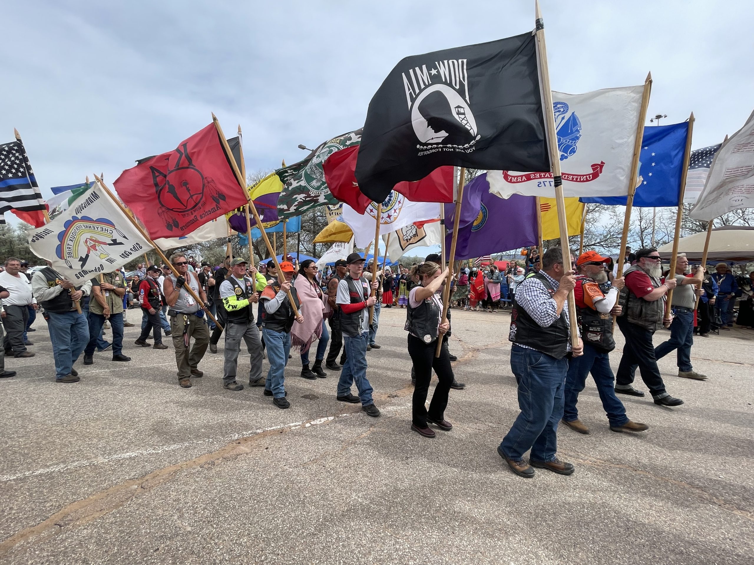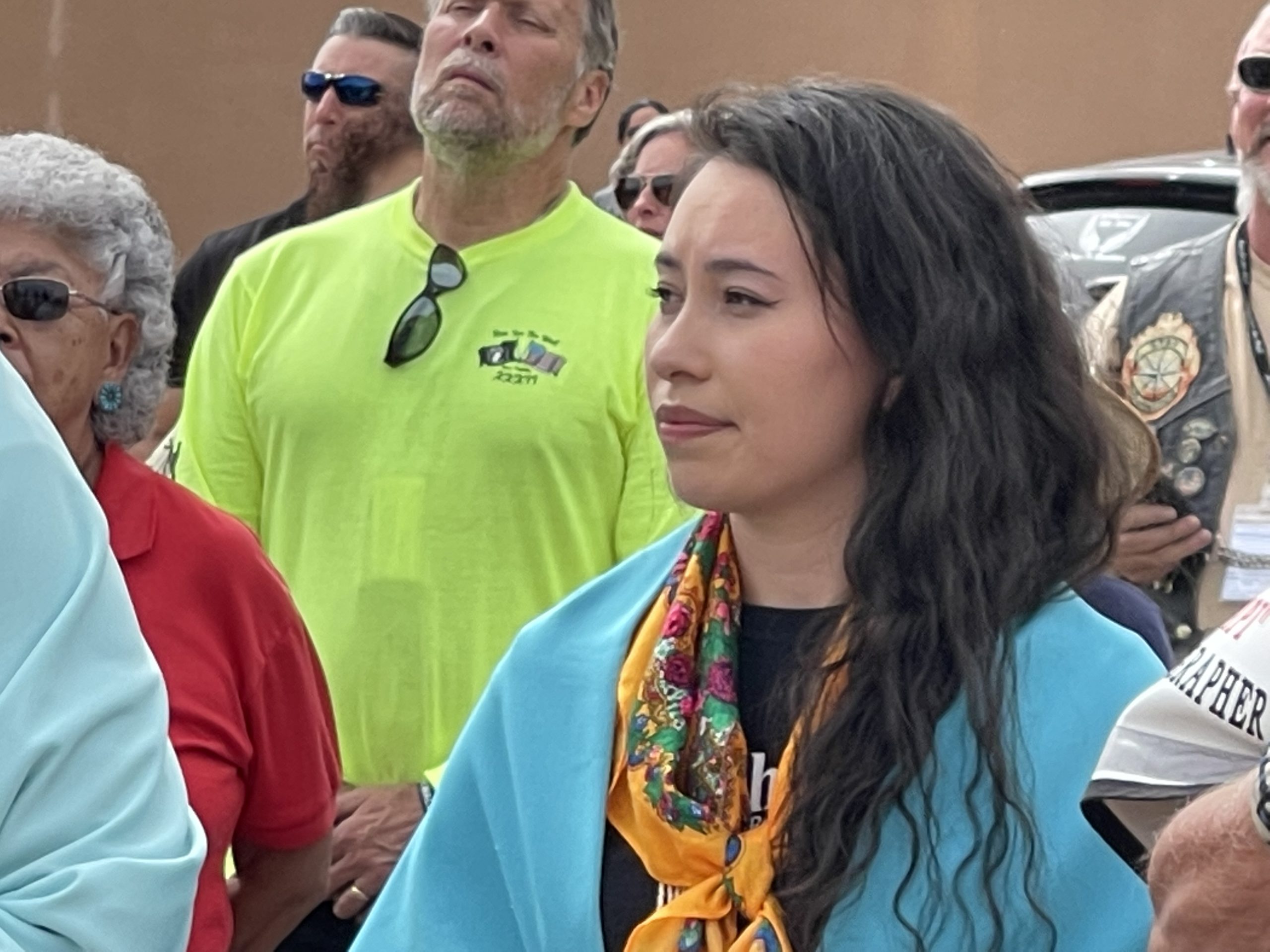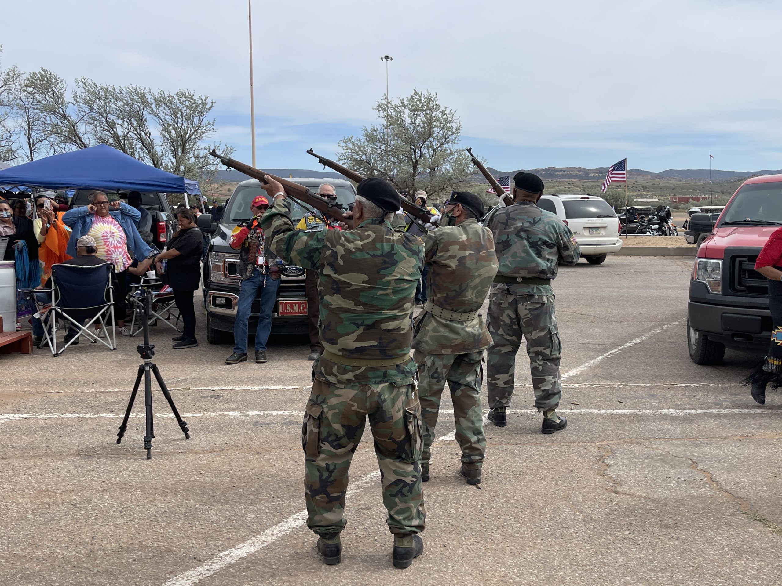 We left Holbrook bound for Gallup, NM where I greatly anticipated our time at Red Rock Park and the three mile’ish parade we ride through town. While not the throng of people we usually encounter on the parade through town, we were met with a good number of patriots who waved flags and cheered our arrival. This is significant. Gallup, NM and the Navajo people were especially impacted by COVID. To see the city rebounding and people starting to get back to a generally normal way of life is very encouraging. The culmination of our parade through town was our arrival at Red Rock Park. The street was lined was flags on both sides ushering us through the history of warriors past who sacrificed for our great nation into a ceremony of honor presented by representatives of several First Nations (Navajo, Comanche, Osage, Cheyenne, and descendants of the Modoc tribe from NE California).